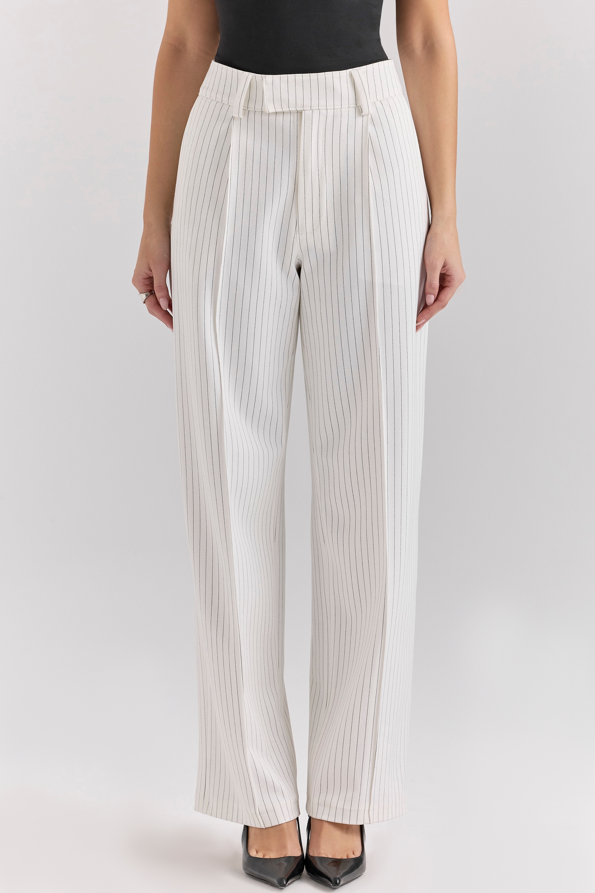 White Pinstripe High Waist Tailored Trousers