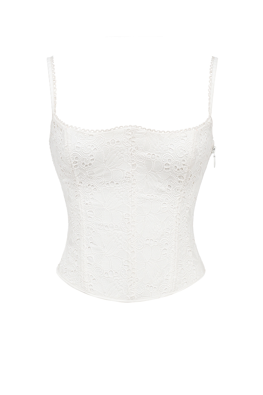 White Broderie Anglais &Amp; Cotton Midi Dress