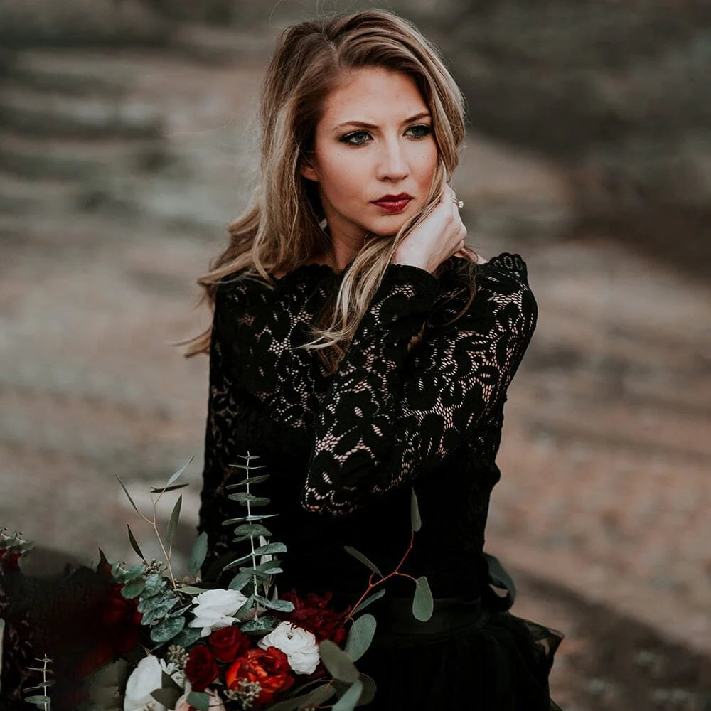 This breathtaking A-Line gown, crafted from a beautiful combination of lace and tulle fabric, exudes both elegance and whimsy. Available in Black, White, Ivory, and Champagne, it offers a range of timeless shades to complement your wedding theme. The sweep train gracefully extends behind, creating a stunning, ethereal effect as you move. The scoop neckline adds a soft, rounded shape, enhancing the overall delicacy of the design. Long sleeves bring an element of sophistication and warmth, perfect for cooler seasons or adding a vintage-inspired touch. The covered button back adds a charming, classic finish, while the lace-up elements ensure a comfortable, customized fit. The gown is beautifully embellished with intricate appliques and a sweet bow-knot, adding an element of romantic whimsy and refinement. This gown combines timeless features with modern, delicate details, making it an ideal choice for a bride looking for elegance and individuality.
