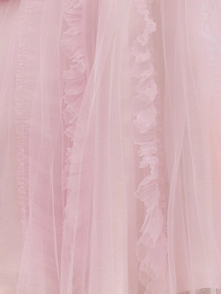 Get ready to turn heads with the "Celeste" Pink A-Line Deep V Neck Ruched Short Homecoming Dress from KissProm. Crafted from delicate tulle fabric, this dress boasts a flattering A-line silhouette in a stunning pink hue. The deep V-neckline and sleeveless design add a touch of elegance, while the lace-up back guarantees a perfect fit. The playful ruffles add a whimsical touch, making this dress perfect for any special occasion where you want to feel confident and beautiful.