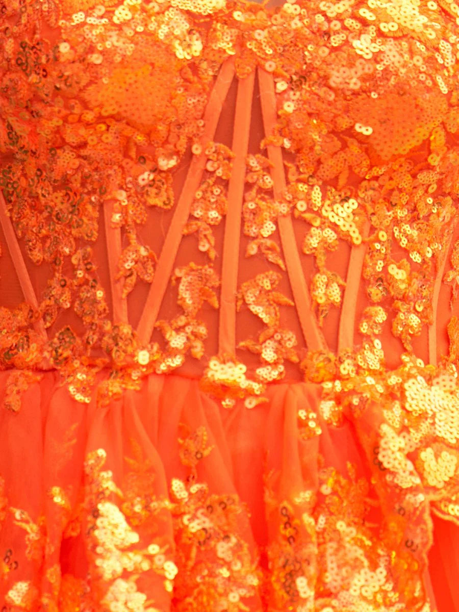 Introducing Dress Emma from KissProm, the A-line one-shoulder homecoming dress that is as enchanting as the night sky. Crafted from the finest lace fabric, Emma is a breathtaking display of elegance. Its charm is accentuated with sequin embellishments that shimmer in the light and its A-line silhouette is designed to flatter various body types. The short mini length adds a playful, youthful spirit to the otherwise elegant design. A one-shoulder neckline tastefully reveals a hint of skin, while the sleeveless design makes it an ideal choice for dancing and celebrating.