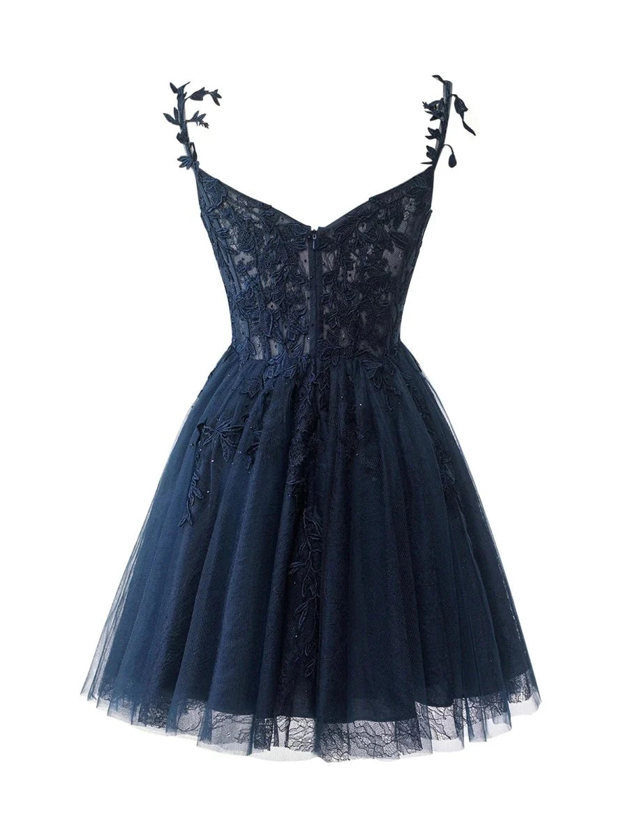 Mona, a charming short homecoming dress, crafted from delicate lace fabric. Available in Mint Green, Hot Pink, White, and Navy, it features A-line silhouette with spaghetti straps and a lace-up back for a perfect fit. The beautiful appliques add a sense of elegant. Mona is the perfect choice for a stylish and memorable homecoming event.