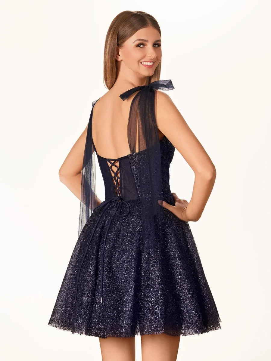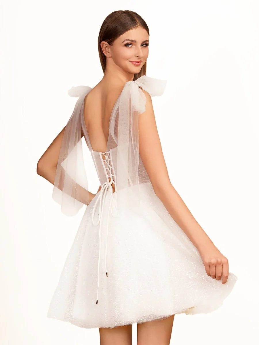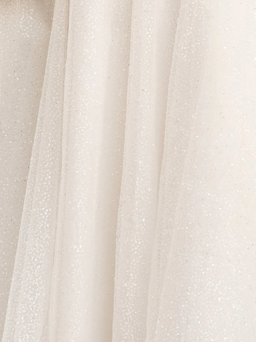 The Jessalyn party dress is a captivating blend of charm and elegance, perfect for making a statement at any event. This dress is made from soft tulle fabric in a pristine ivory color, creating a graceful silhouette. The shimmering glitter sequins catch the light from every angle, making you sparkle all night long.