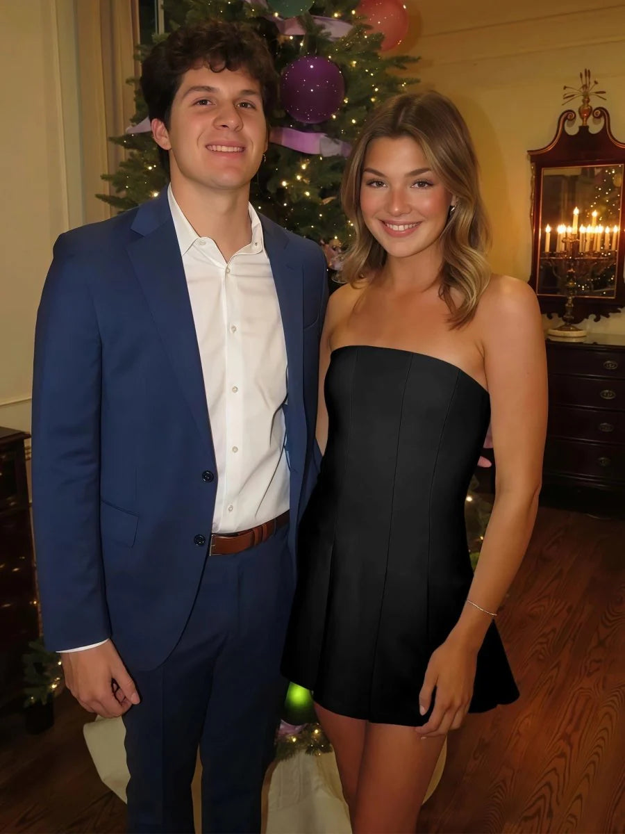 Crafted from smooth satin in a flattering A-line silhouette, this strapless mini dress features elegant pleating that adds just the right touch of sophistication. The lace-up back ensures a perfect fit, while the vibrant color options make it easy to express your personal style. Whether you're headed to homecoming, a cocktail party, or a celebratory night out, Hydrangea transitions seamlessly from one event to the next.